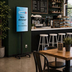 Get your business featured on digital screens placed inside real local businesses — helping you stay visible in the places people already visit, wait, and look around.